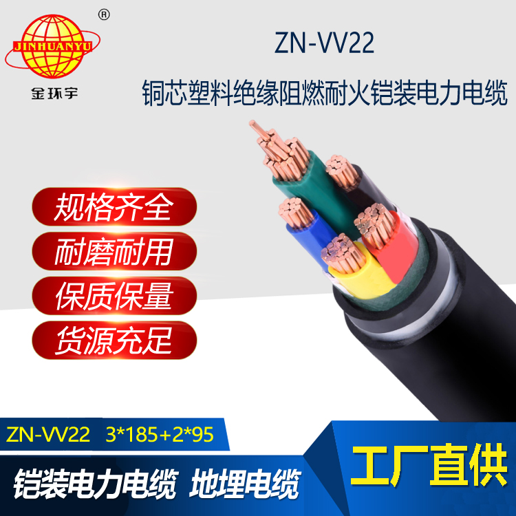 ZN-VV22銅芯阻燃耐火電力電纜用于交流額定電壓Uo/U為0.6/1kV及以下的輸配電線路上。