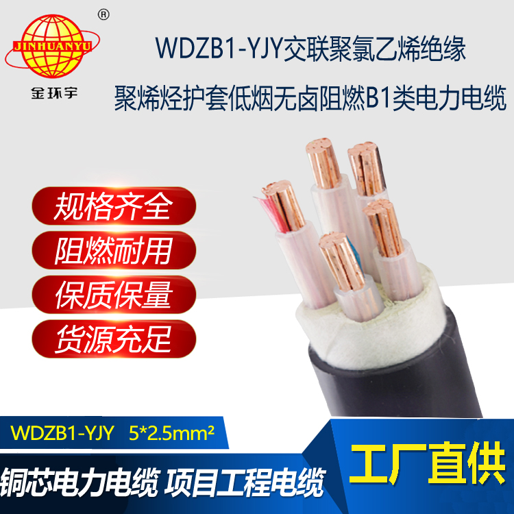 金環(huán)宇電線電纜 B1類阻燃無(wú)鹵低煙電力電纜WDZB1-YJY 5x2.5平方 銅芯